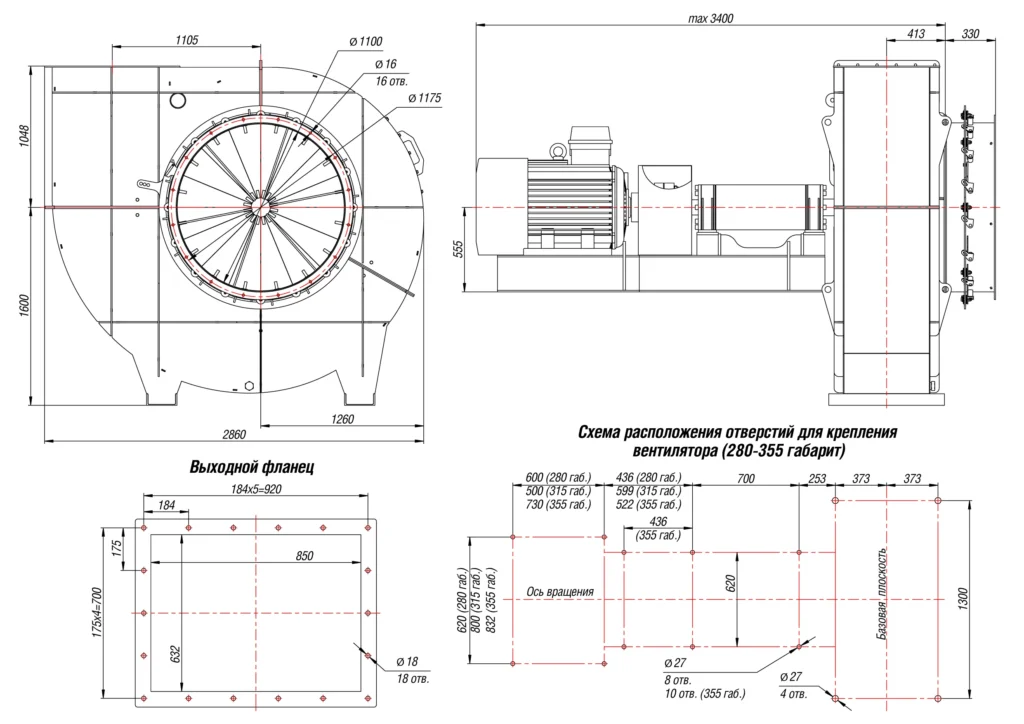 Температура перемещаемой среды, °ССкорость вращения, об/мин.Номинальная мощность, кВтНоминальный ток при 380В (50 Гц), АТип электродвигателя *Производ. Q min, тыс. м3/чПроизвод. Q max, тыс. м3/чПолное даление Pv min, ПаПолное давление Pv maх, ПаМасса вентилятора, кг
