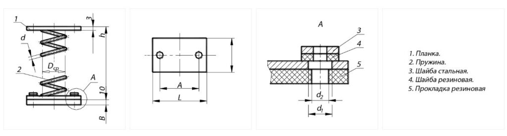 МаркаРабочая (Рраб.)Предель-ная (Рпр.)Верти-кальная жесткость, кг/см2Высота в свобод-ном состоя-нии, мм(Рраб.)(Рпр.)Число рабочих витковМасса, кг