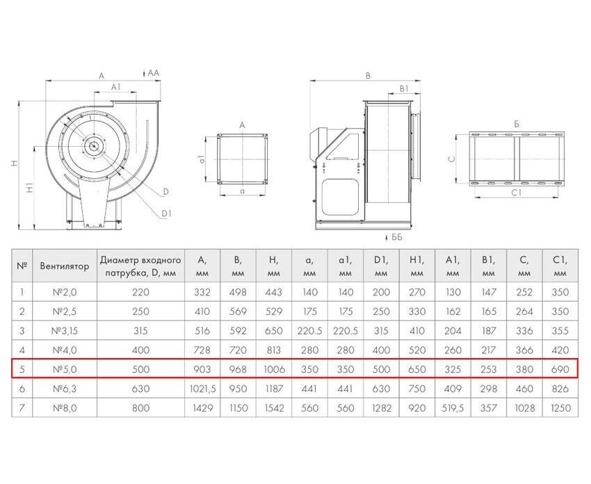 Входной диаметр, мм — 500 мм